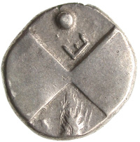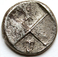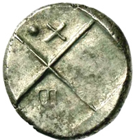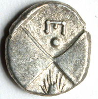 | Uncertain letter or monogram beside pellet // pentagram | Weber 2408 |