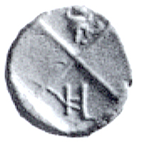 | I below pellet // H on raised quarter // rooster |