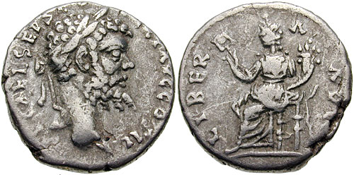 IMP CAE L SEP SEV PERT AVG COS II, laureate head right / LIBER AVG, Liberalitas